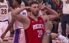 比赛进行到三节结束,湖人队中唯一数据尚可的球员是艾顿。他在25分钟的上场时间里,12次投篮命中9次,砍下19分、10个篮板。但令人意想不到的是,在三节比赛尚未结束时,艾顿因一次犯规被裁判判定为二级恶意犯规,直接被驱逐出场。